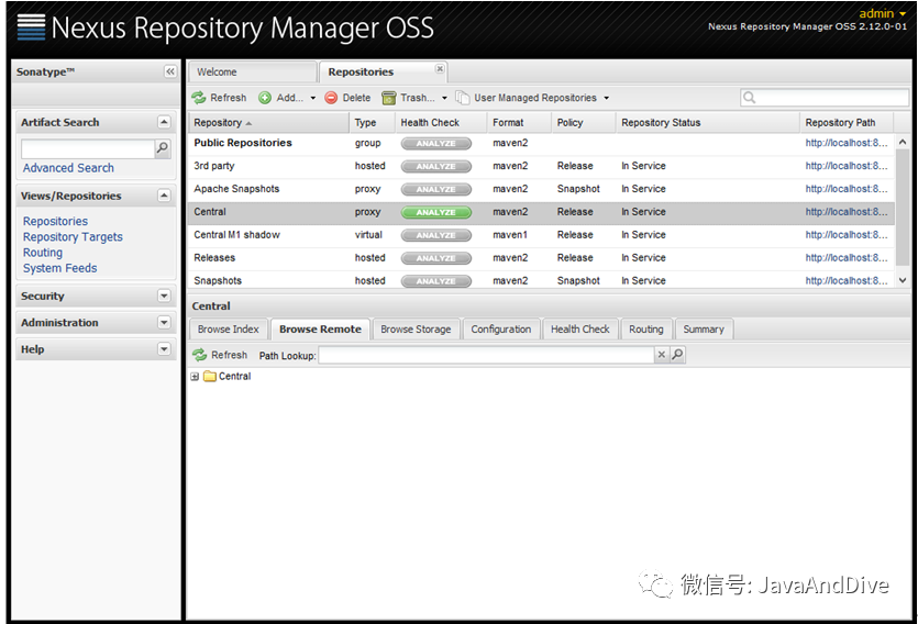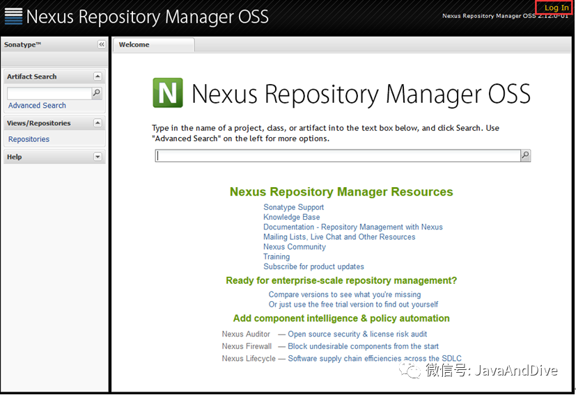 当Nexus启动后,可以在浏览器中输入:http://localhost:8081/nexus