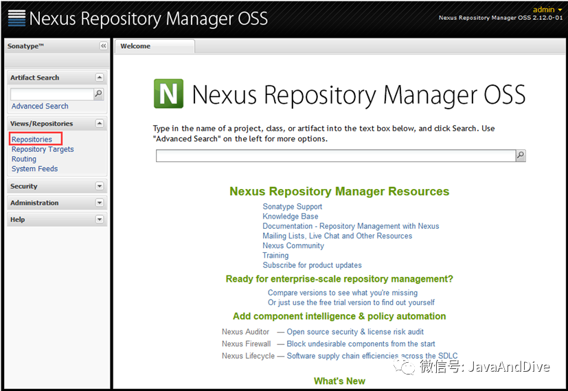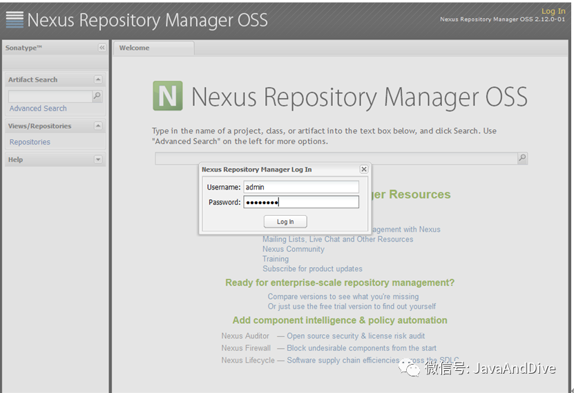 Nexus的官网 http://www.sonatype.com/,下载Nexus RepositoryManager OSS 2.xx。资料中已经下载“nexus-2.12.0-01-bundle.zip”。也可以使用“nexus-2.1.2.war”直接放置在tomcat的webapps目录下