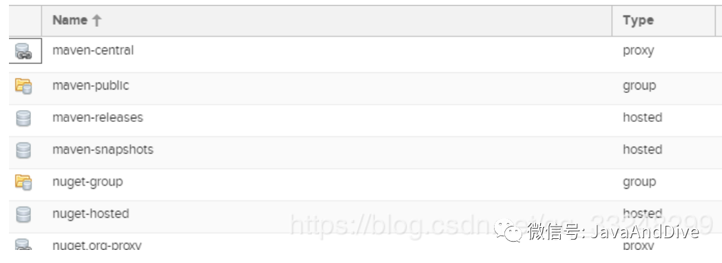 group:组仓库(将来连接组仓库。包含Hosted:宿主仓库,proxy:代理仓库)