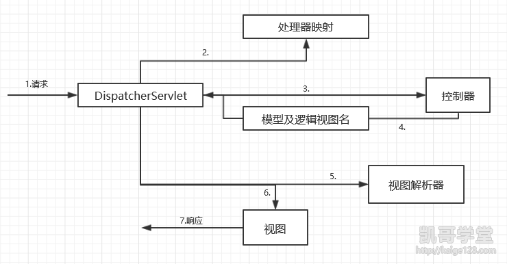 可以看到,请求要经过很多步骤,最终才能形成返回客户端的响应。大多数的步骤都是在SpringMVC框架内部完成的。