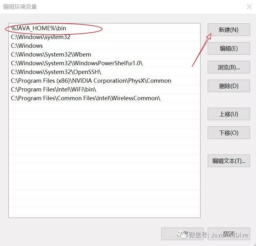 1.2.3选中path环境变量,双击或者点击编辑,选择新建,