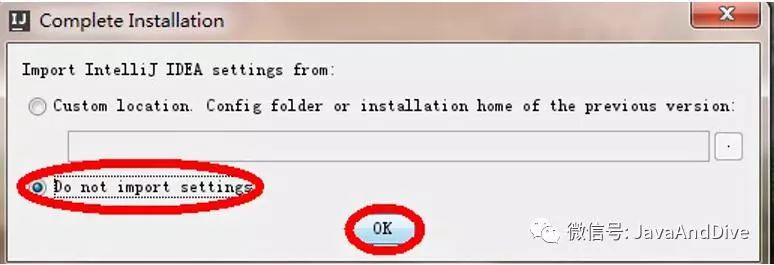 6. 选择不导入之前可能存在的IDEA任何设置,点击 OK