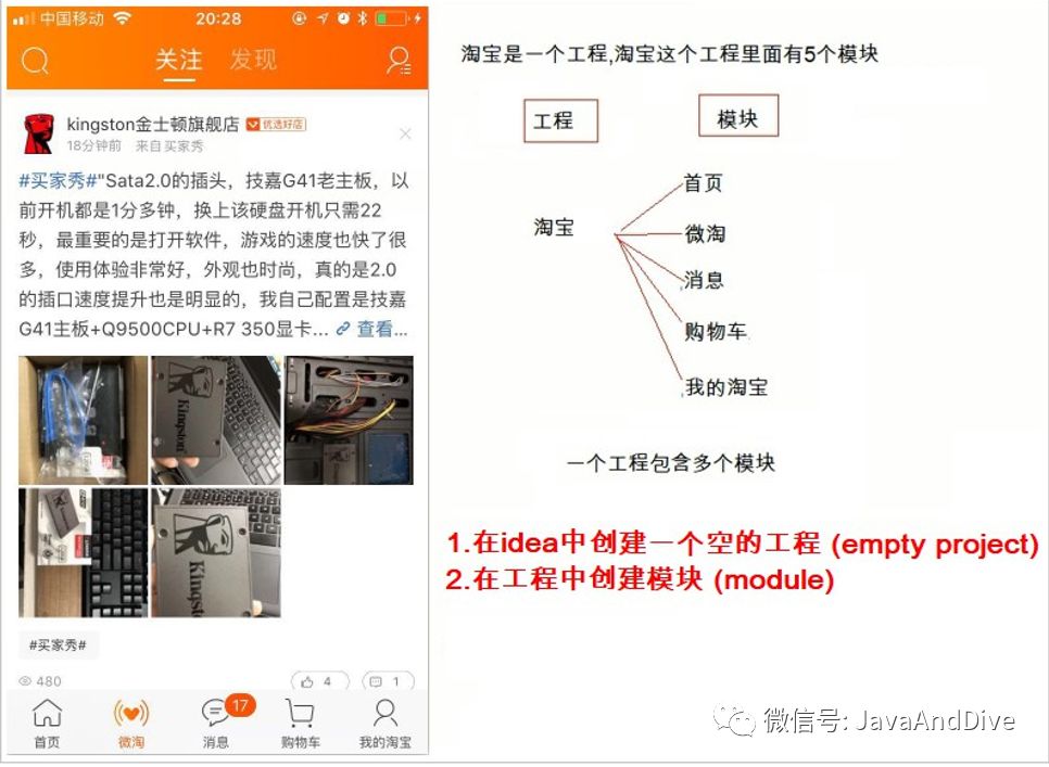 一个项目是一个完整的工程,在IDEA中工程的是project,一个工程下可以包含很多的模块,在 IDEA中模块是Module,如下: