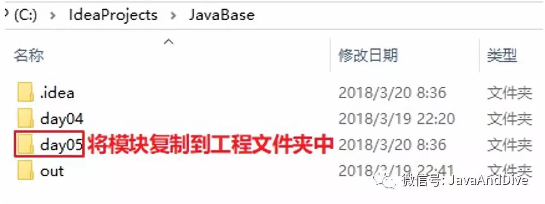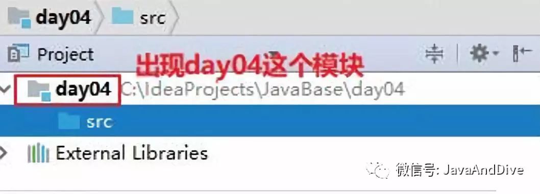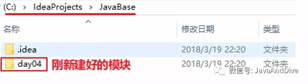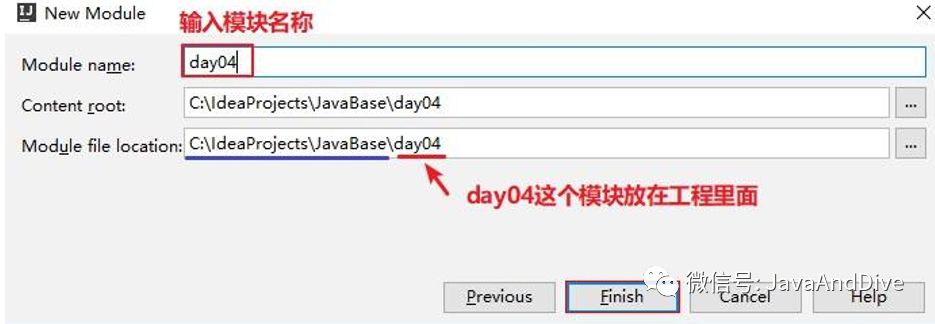 9. 输入模块名称 day04 ,默认就放到了 JavaBase 工程对应的文件夹中
