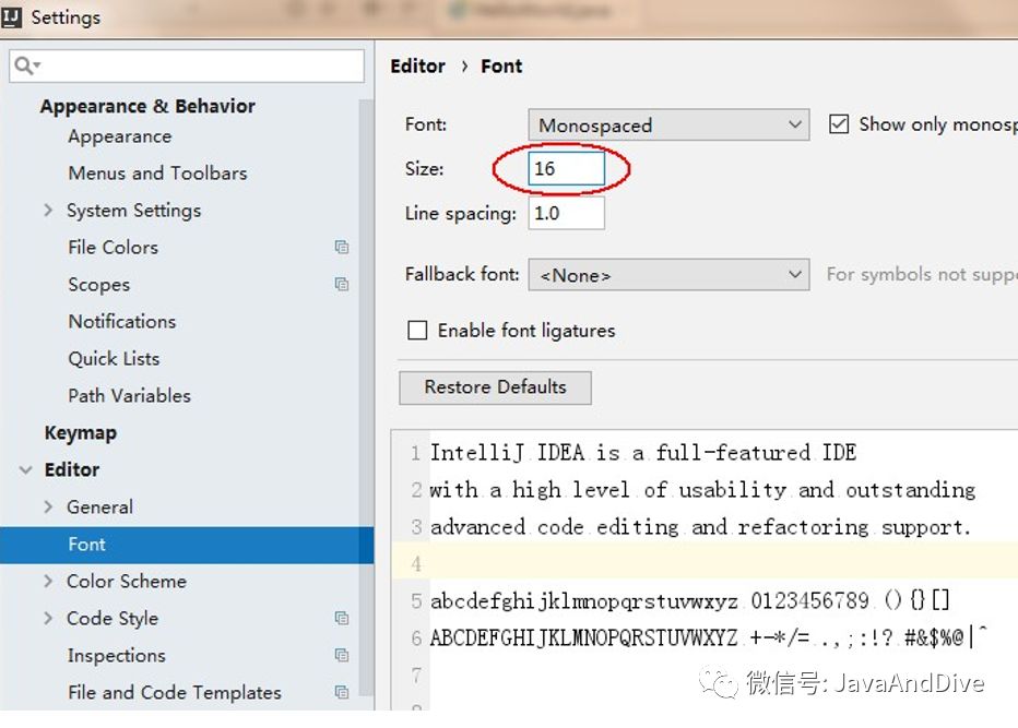IDEA工具的默认字体非常小,代码编辑器和控制台的输出字体都需要进行调整。