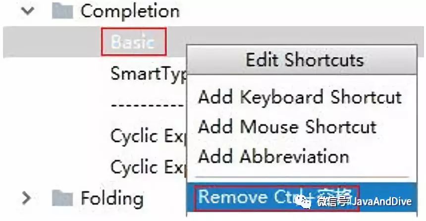 1. 删除现有的快捷键:双击 Basic->remove->Ctrl+空格