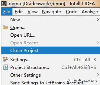 1. 关闭IDEA中已经存在的项目, File->Close Project