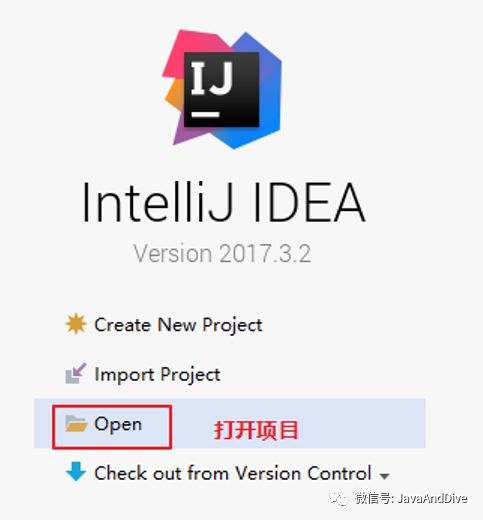 3. 在IDEA的启动界面上,点击 OPEN ,选择项目目录即可