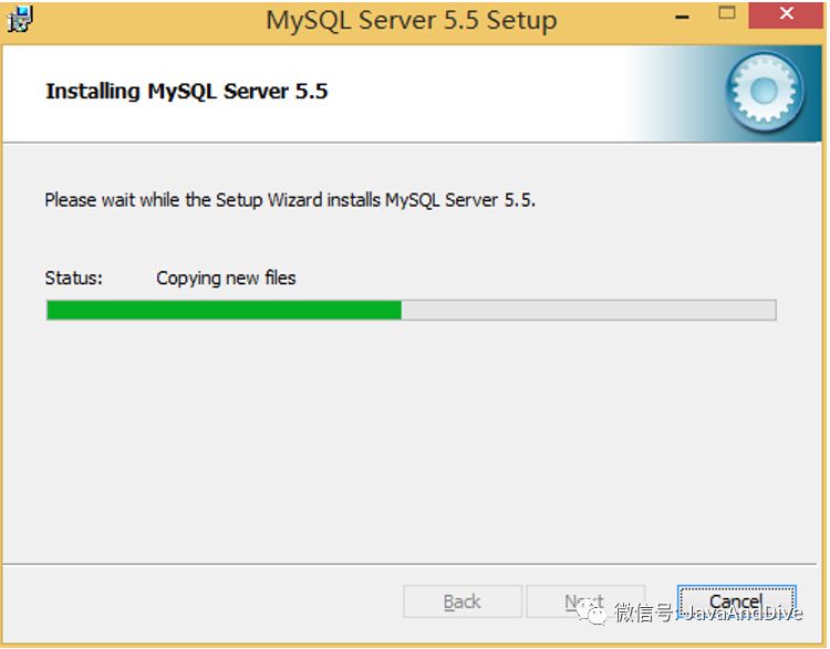 5、正在安装中,请稍候,直到出现下面的界面, 则完成MYSQL的安装