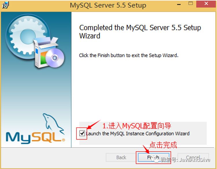 1、安装完成了,出现如下界面将进入mysql配置向导。