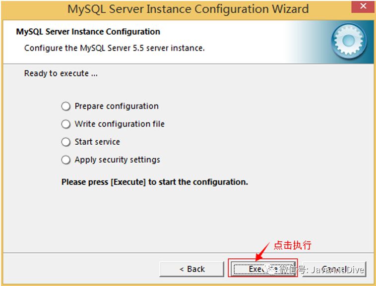 10、确认设置无误,按“Execute”使设置生效,即完成MYSQL的安装和配置。