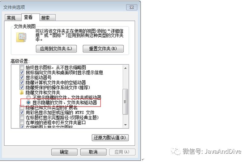 4.1 打开window系统的“显示隐藏文件”功能,以便查看到系统的所有隐藏文件