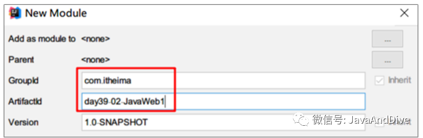 2) 将模块添加到哪个项目,指定其父模块,都设置为none。指定项目的坐标。