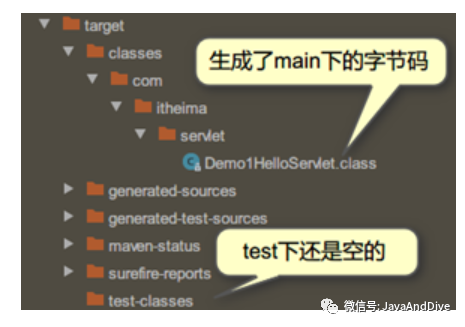 4) 只编译了java中的代码,test-classes中的代码没有编译。