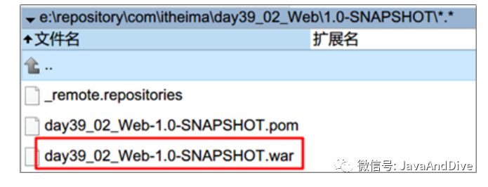 3) 安装完毕后,在本地仓库中可以找到当前项目创建的war包信息