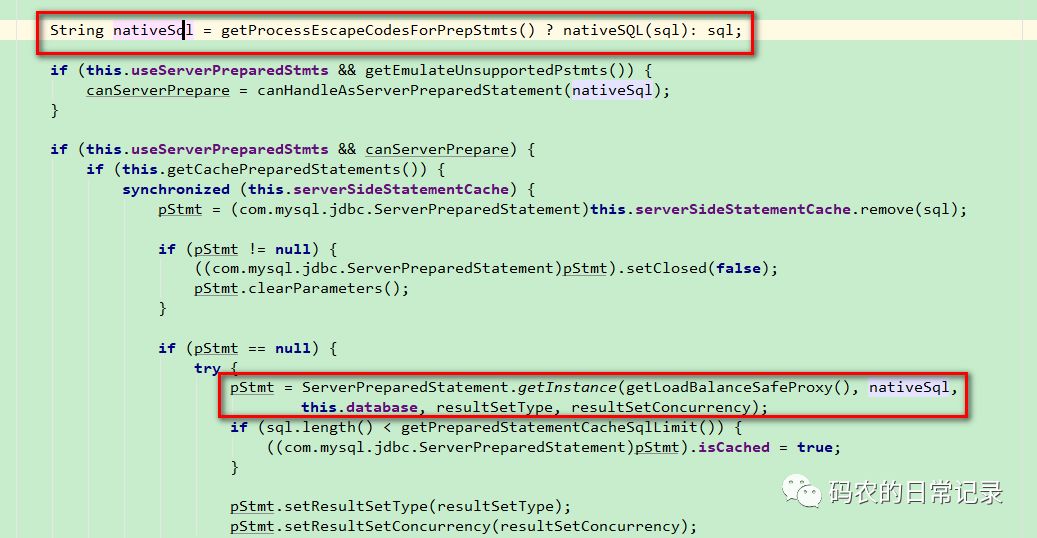 比较好奇的是mysql是如果实现connection,并把sql语句发送给中间件的,这时候来跟一下源码: 首先构建prepareStatement: