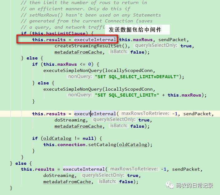 接下来调用statement的executeQuery()方法: 可以看到生成一个sendPacket缓冲区,