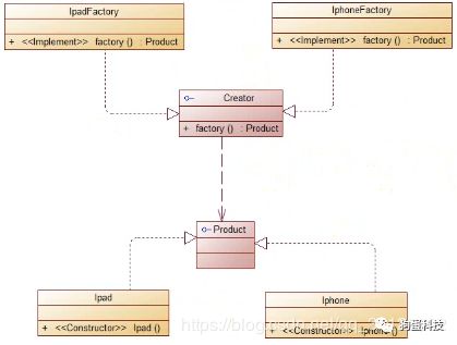 这里我们先看一张UML图,请认真看图,这里是关键,这个例子是有关苹果公司生产的产品的,众所周知,苹果公司比较出名的有iPad以及iPhone(当然还有其他的我就不举例了),我们也知道,虽然这两个产品感觉差不多,但是实际上是两个不同的产品,不管是屏幕,大小,功能都不太一样,然后你让我用同一个工厂去代工又有点别扭,所以这里我把工厂类也抽象了,就是说,你要iPad,我就给你调用iPadFactory(iPad工厂),你用iPhone,我就给你调用iPhoneFactory(iPhone工厂)。懂了吗,等于就是更具体了,更详细了。接下来我们看一下代码你就更了解了。