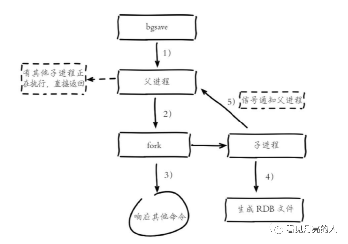 1.执行bgsave命令,Redis父进程判断当前是否存在正在执行的子进程,如果存在则直接返回.