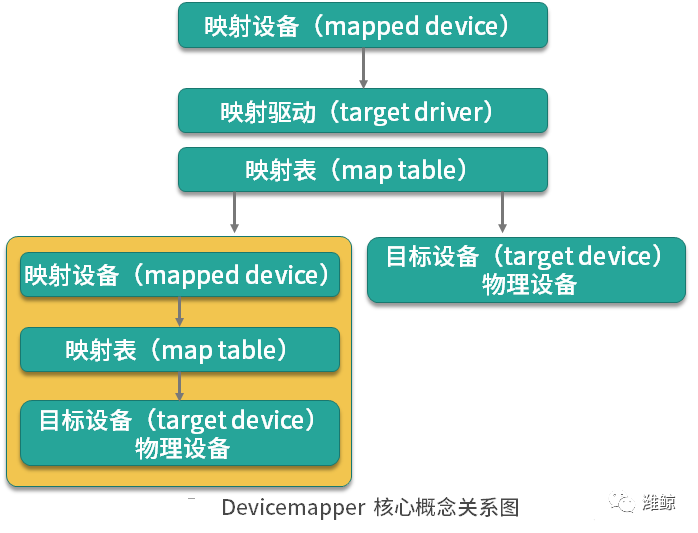 Devicemapper 的工作机制主要围绕三个核心概念。