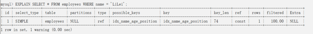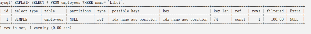 EXPLAIN SELECT * FROM employees WHERE name = 'LiLei';