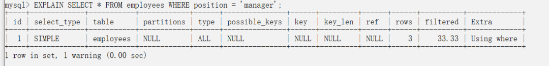 EXPLAIN SELECT * FROM employees WHERE position = 'manager';