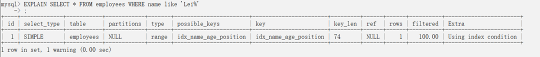 EXPLAIN SELECT * FROM employees WHERE name like 'Lei%';