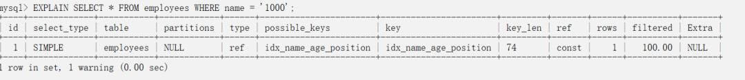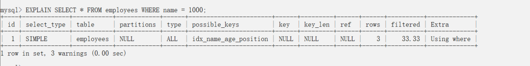 EXPLAIN SELECT * FROM employees WHERE name = '1000';