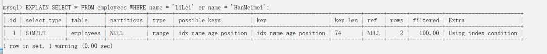 EXPLAIN SELECT * FROM employees WHERE name = 'LiLei' or name = 'HanMeimei';