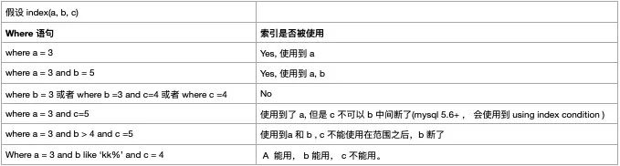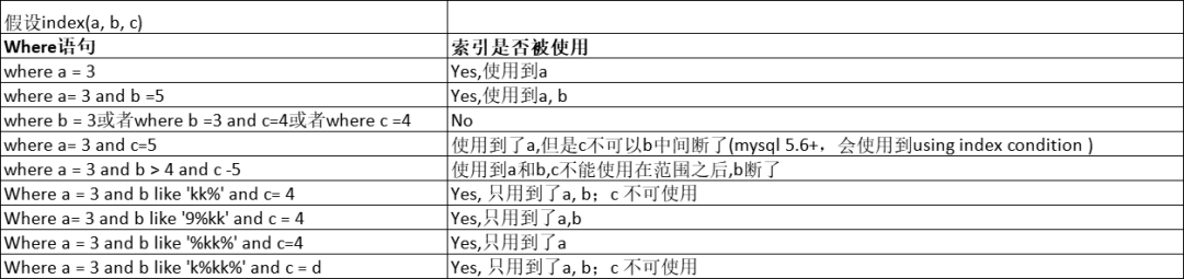 like KK%相当于=常量,%KK和%KK% 相当于范围 下面是常见的几种索引查询失效或者,可用的判定