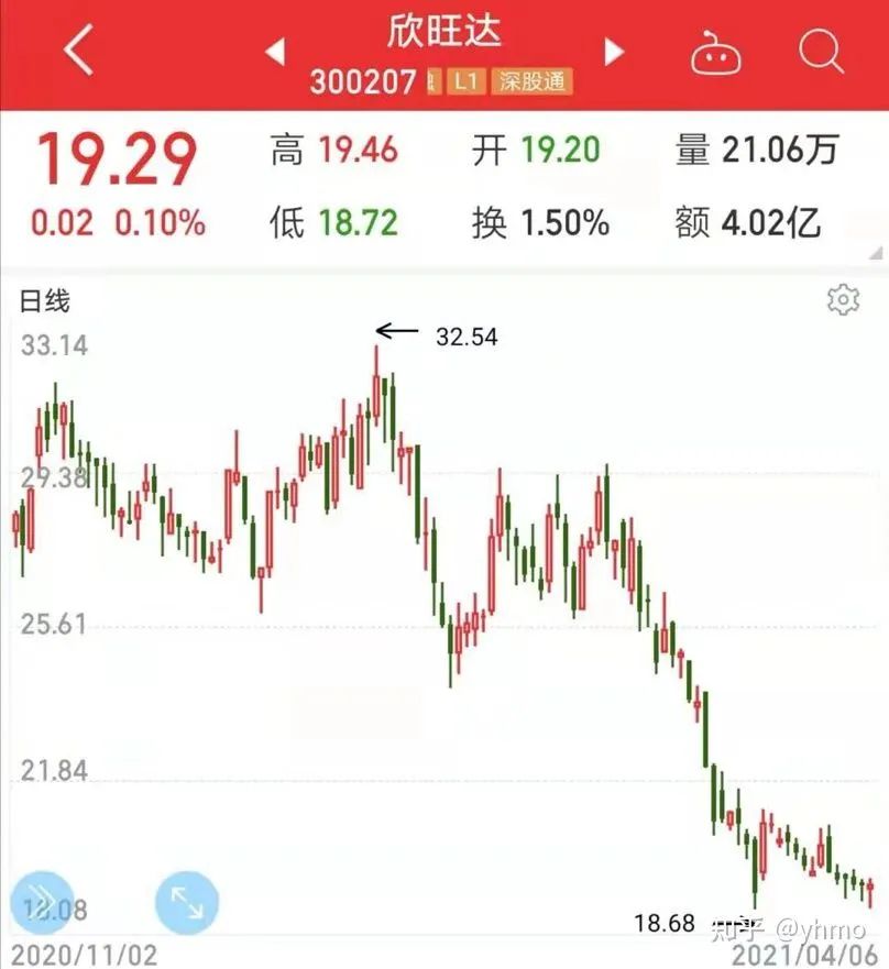 再来看看 300207 的 2021 年 4 月 6 号之前 100 天的行情: