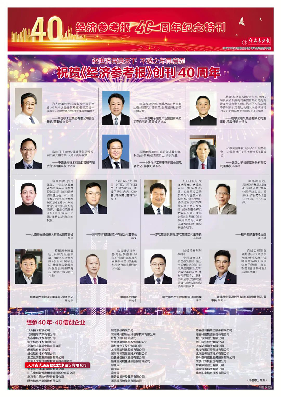 《经济参考报》创办于1981年,是由新华社主管主办的最早的全国性经济类报纸,由邓小平同志题写,也是中国证券监督管理委员会公布的7家证券市场法披媒体之一。作为国内的权威媒体《经济参考报》,它是以“经济参考”为统领,突出前瞻性、探索性和监督性,强化深度报道、观点报道和国际报道。信创企业40榜单是《经济参考报》发布的具有行业权威性的榜单,是国内龙头企业与新时代顶层战略同频共振、守正创新的坚实印证。