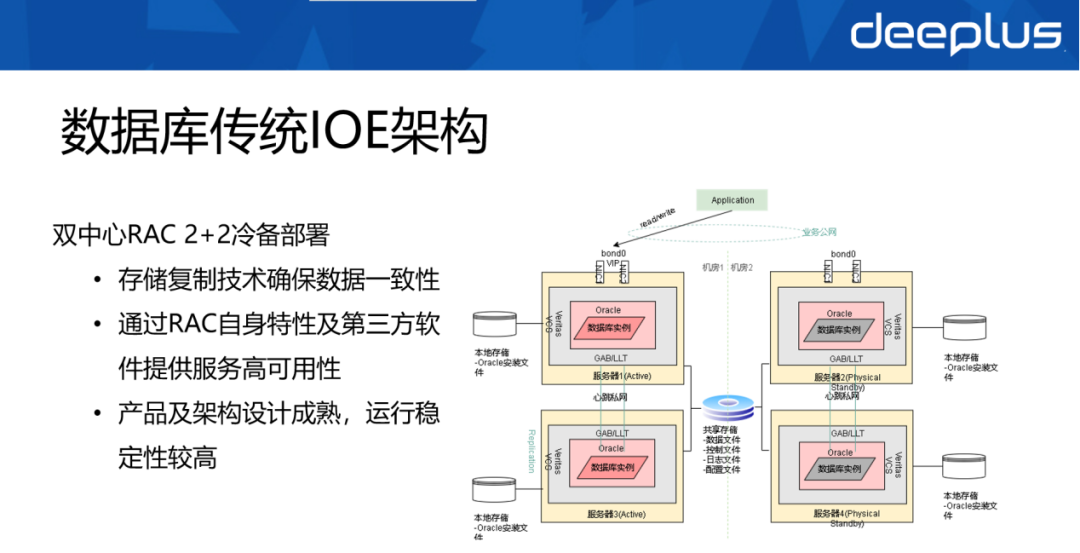 包括云缴费系统,它用的也是这种传统的IOE架构,在部署模式上是采用的双中心RAC 2+2的冷备部署: