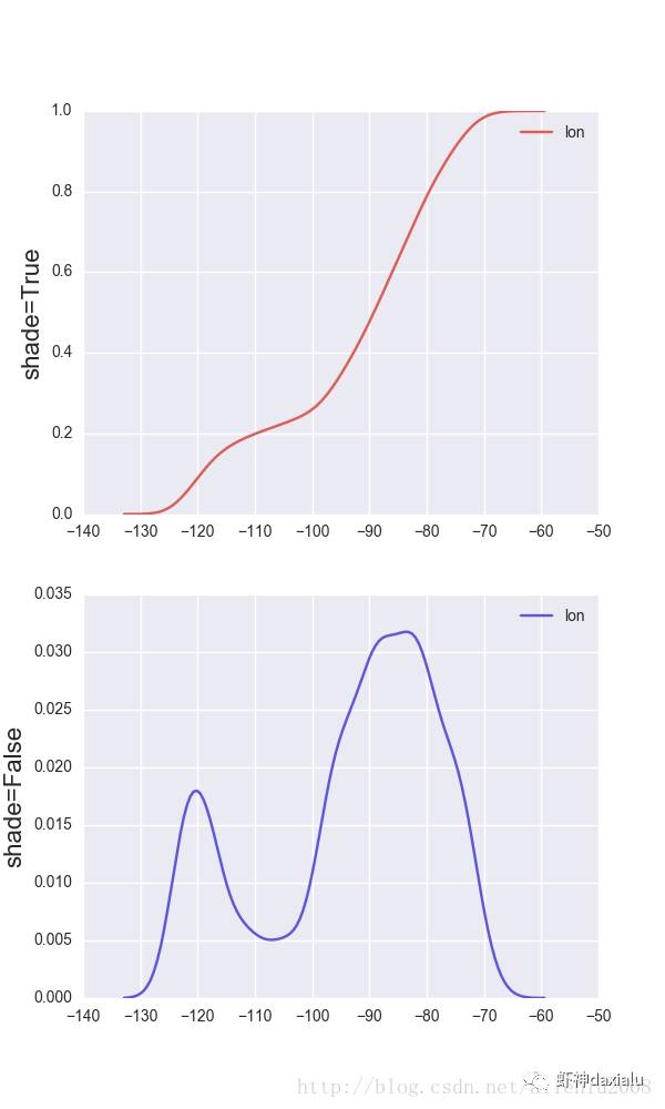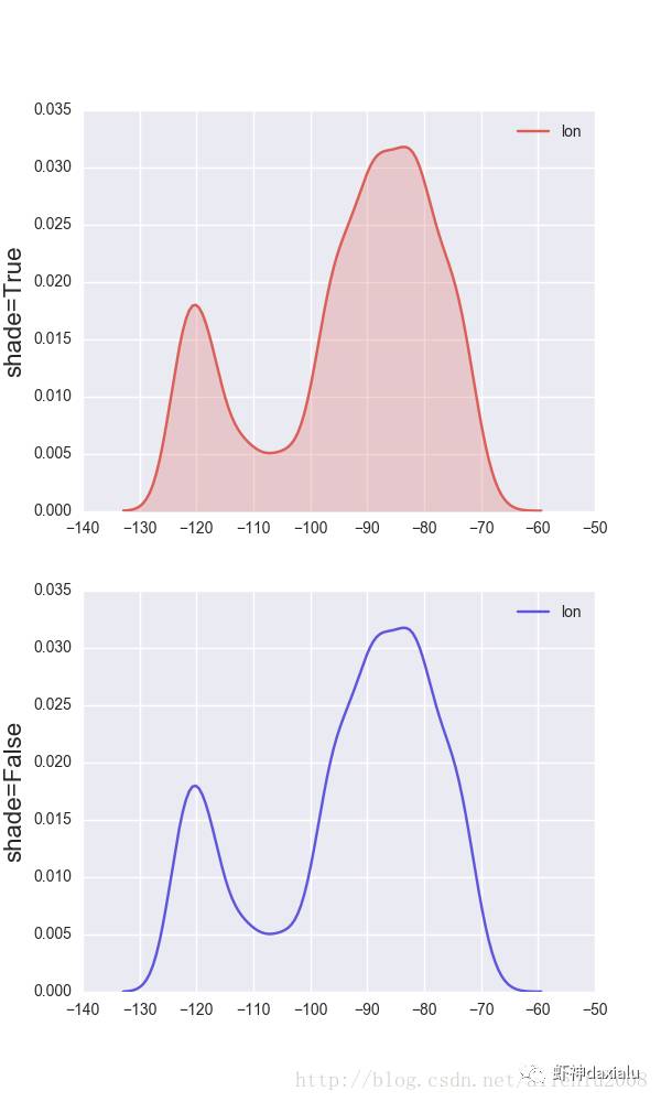 shade: 是否进行填充,如果为False,那么就表示进行核密度线表示,如下:
