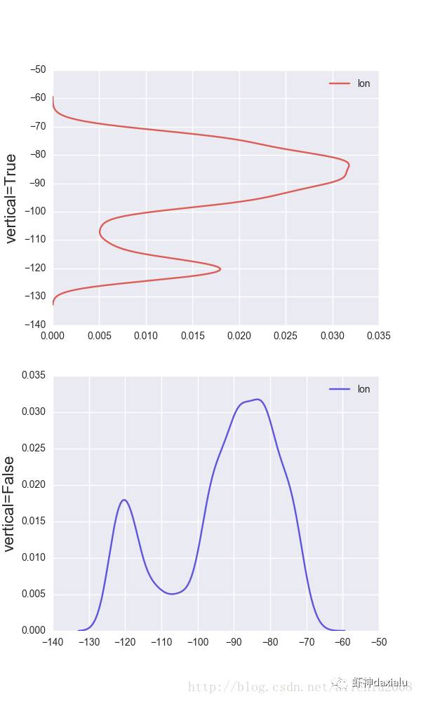 好吧,从二维平面上来看完的,他们几乎是完全没有区别的(区别相当细微,垂直看下去,几乎可以忽略不计),但是如果平铺开来,比如我就用纬度进行密度分析,就可以看出不同来了,如下: