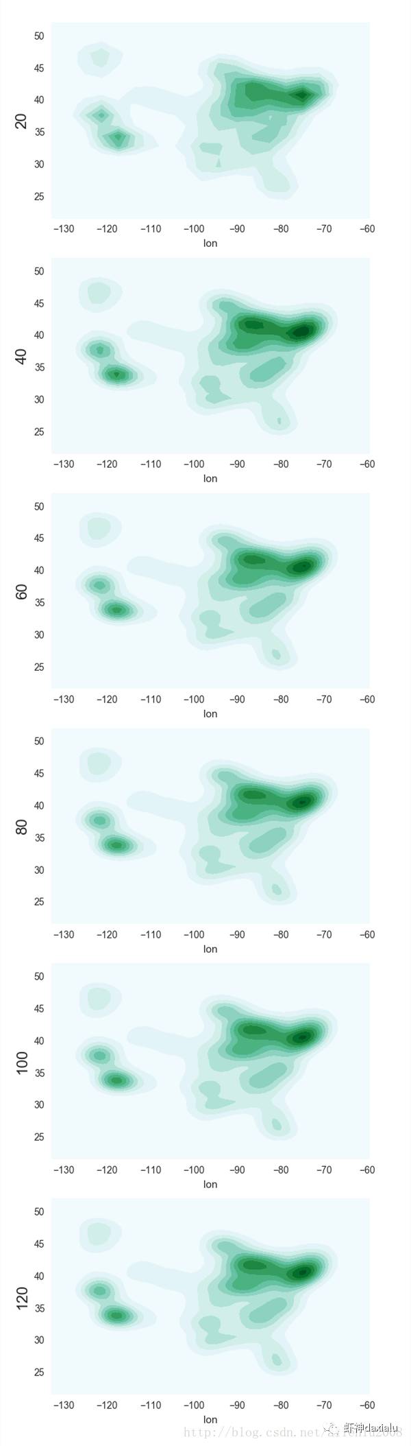 R语言的核密度渲染弄完了,今天来看看Python的核密度。本来没准备些Python,但是今天在玩seaborn包的时候,发现了强大的kdeplot这样一样工具,让虾神我惊为天人,不写感觉都对不起这个方法。