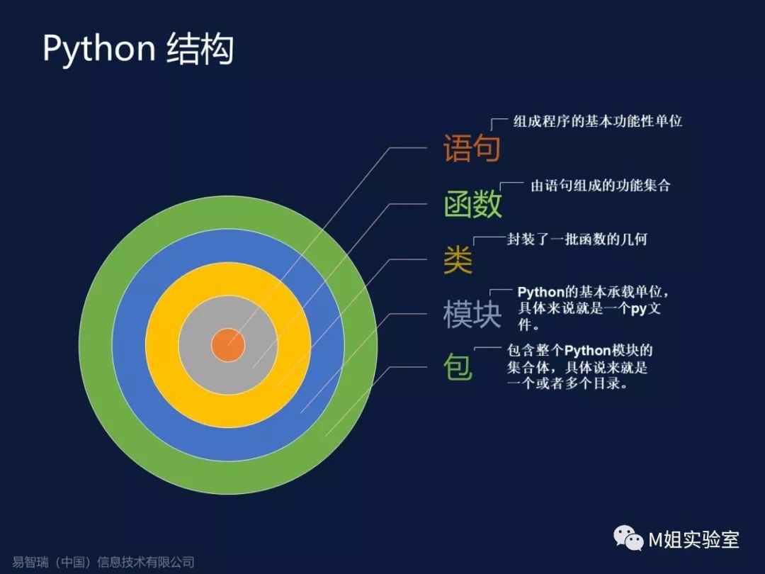 Python的结构从下往上看,跟Java和C sharp不一样,Python最上面有一个包,包就是代码模块集合体。回头我们会介绍ArcPy,ArcPy实际上就是一个站点包。