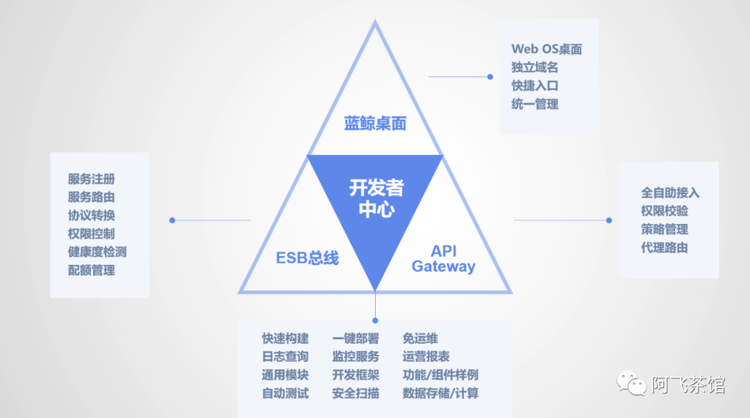 它提供了完善的前后台开发框架、API网关(ESB)、调度引擎、公共组件等模块,帮助开发者快速、低成本、免运维地构建支撑工具和运营系统。PaaS 平台为一个应用(运维工具)从创建到部署,再到后续的维护管理提供了完善的自助化和自动化服务,如日志查询、监控告警、运营数据等,从而使开发者可以将全部精力投入到应用的开发之中。主要功能有:支持多语言的开发框架 / 样例、免运维托管、运营数据可视化、企业服务总线(API 网关)、可拖拽的前端服务(MagicBox)等。