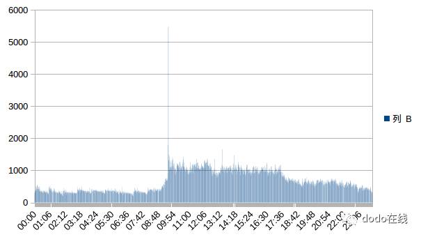 5、获取每分钟的请求数量,输出成csv文件,然后用excel打开,可以生成柱状图