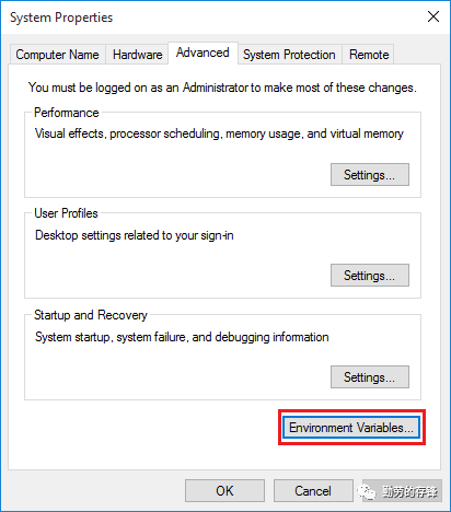 2、Rightclick Computer/This PC,view Properties,open Advanced system settings,view Advanced tab,click Environment Variables....