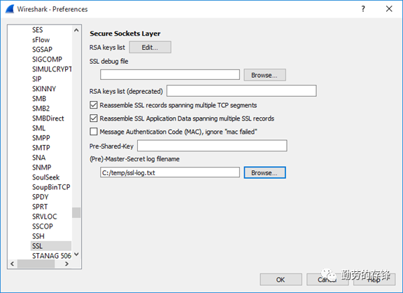 2、配置Wireshark利用服务器证书和密钥解密SSL/TLS流量