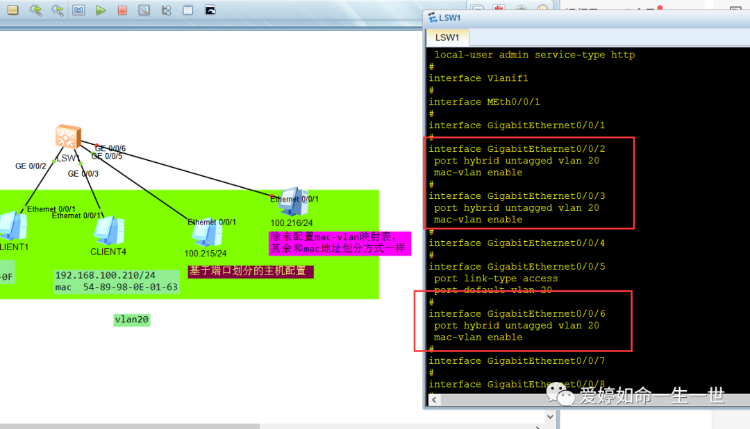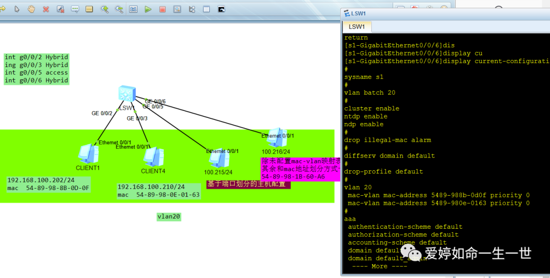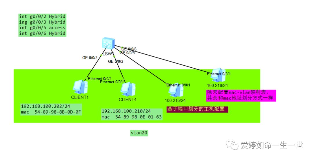 (再次强调)基于mac地址划分的vlan只处理Untagged数据帧,建议在hybrid端口上进行配置。