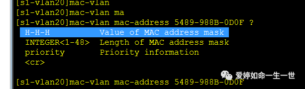 [s1-vlan20]mac-vlan mac-address 5489-988B-0D0F