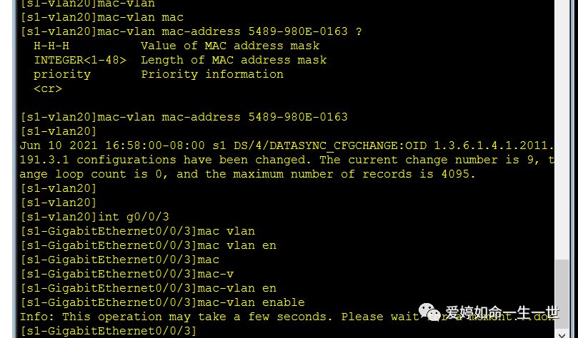 [s1-GigabitEthernet0/0/2]mac-vlan enable