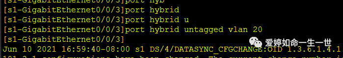 [s1-GigabitEthernet0/0/2]port hybrid untagged vlan 20