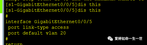 按照拓扑,交换机5号端口下设置为access类型,形成端口划分