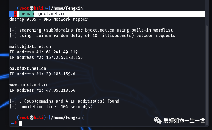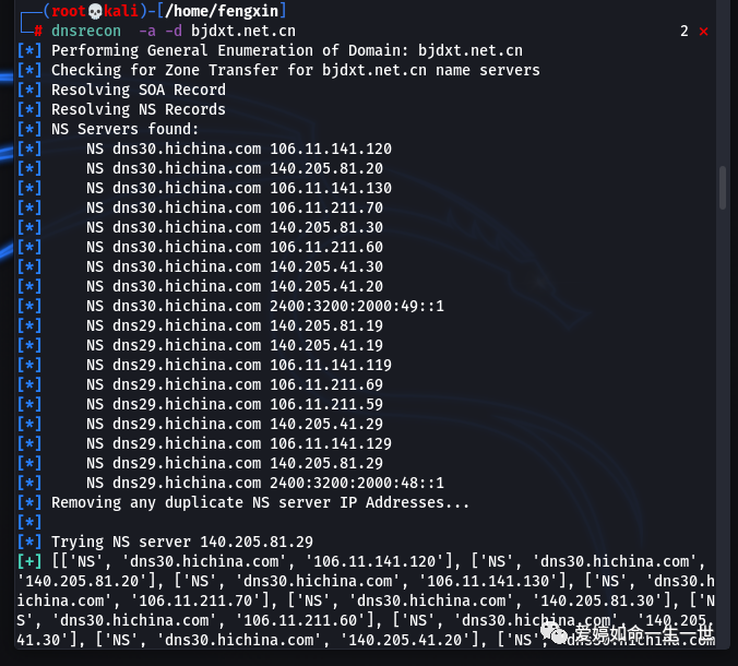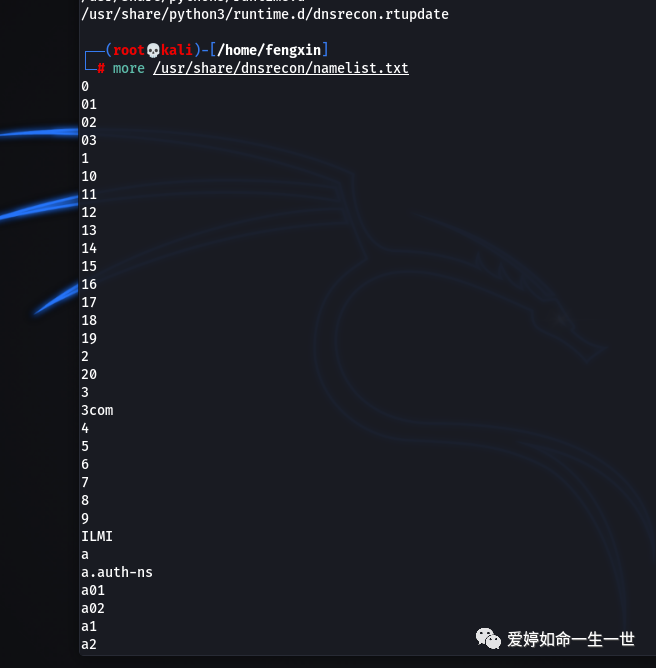 当看到这样的文件等待,是在后台进行字典爆破默认的字典爆破文件 /usr/share/dnsenum/dns.txt: