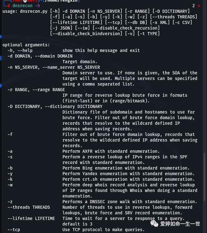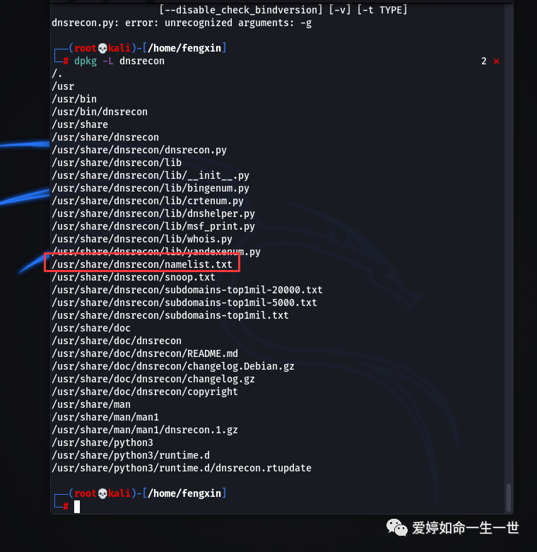 ─# dpkg -L dnsrecon 可根据你的字典文件,-D来指定爆破