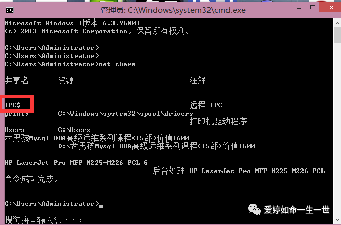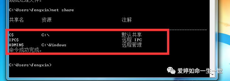 如图所示:发现有两个默认的共享文件夹,我自己的物理机由于安全原因,关闭了默认的admin$共享文件,但是在虚拟机上是默认开启的!