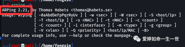 arping默认在卡里Linux中是简化版,但是在2021中的版本是2.21版本,若不是这界面,需要apt install就好了~